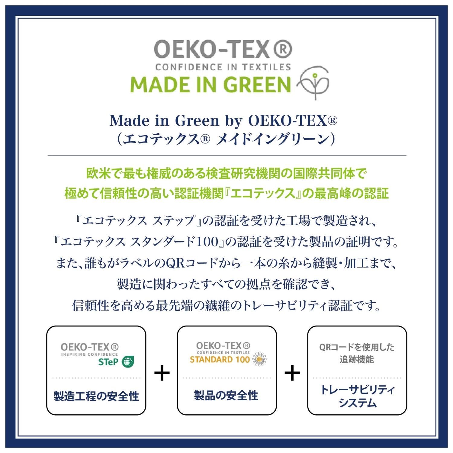 ●エコテックス®が誇る、最高峰のラベル『エコテックス® メイドイングリーン(MADE IN GREEN by OEKO-TEX®)』認証。