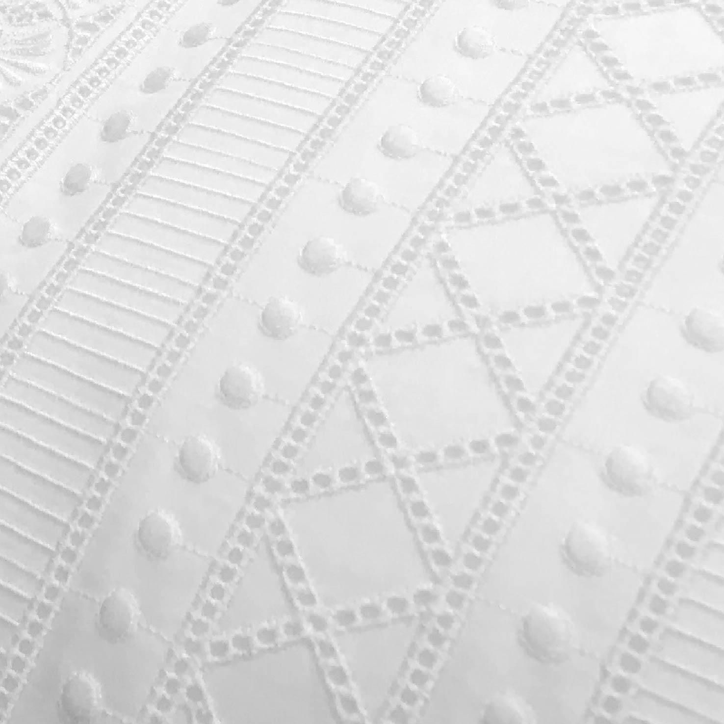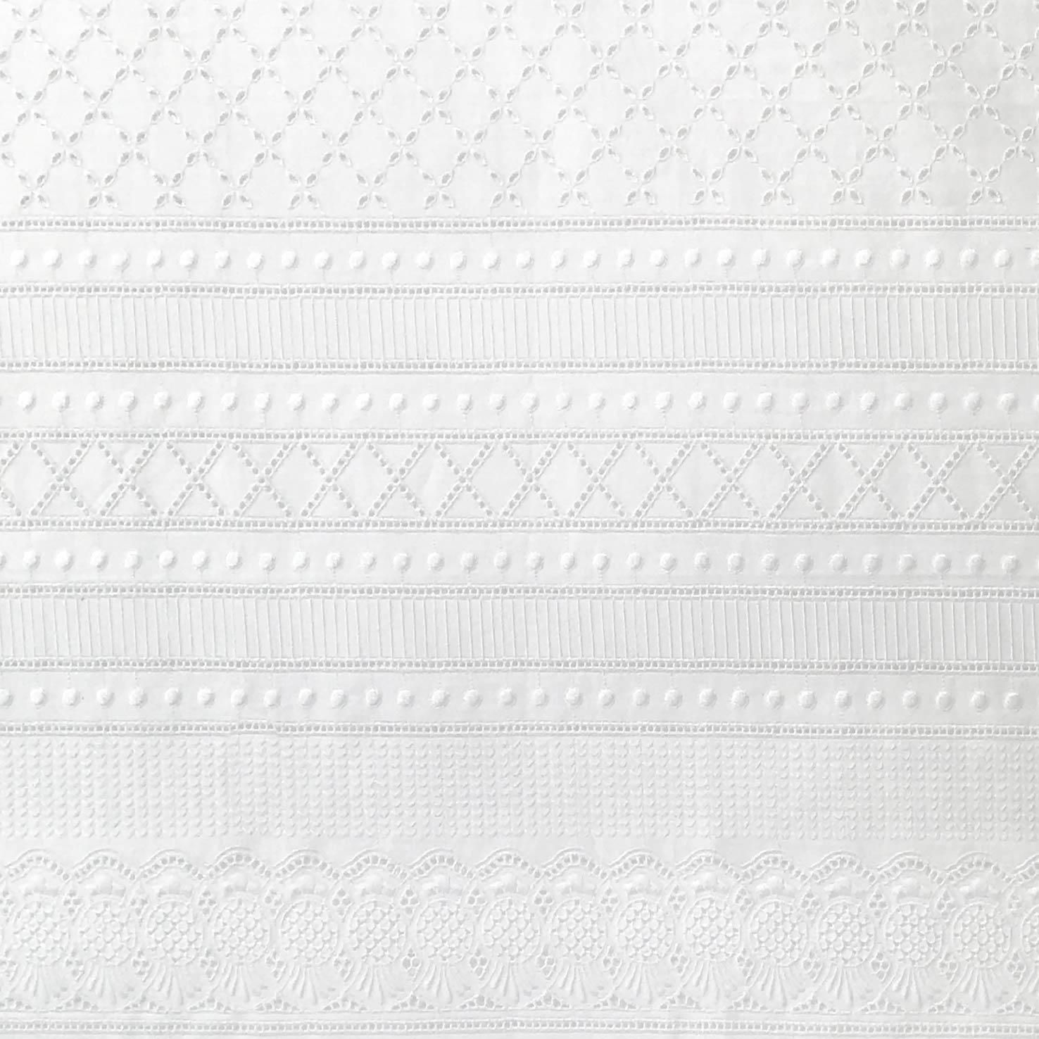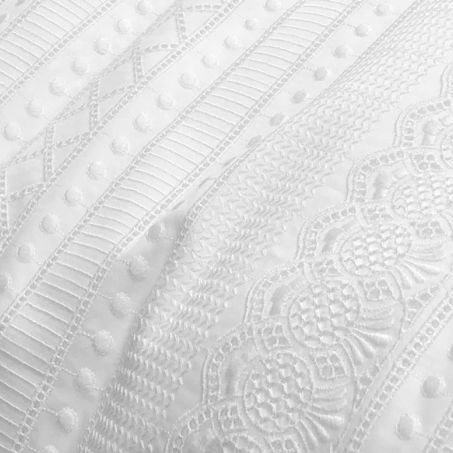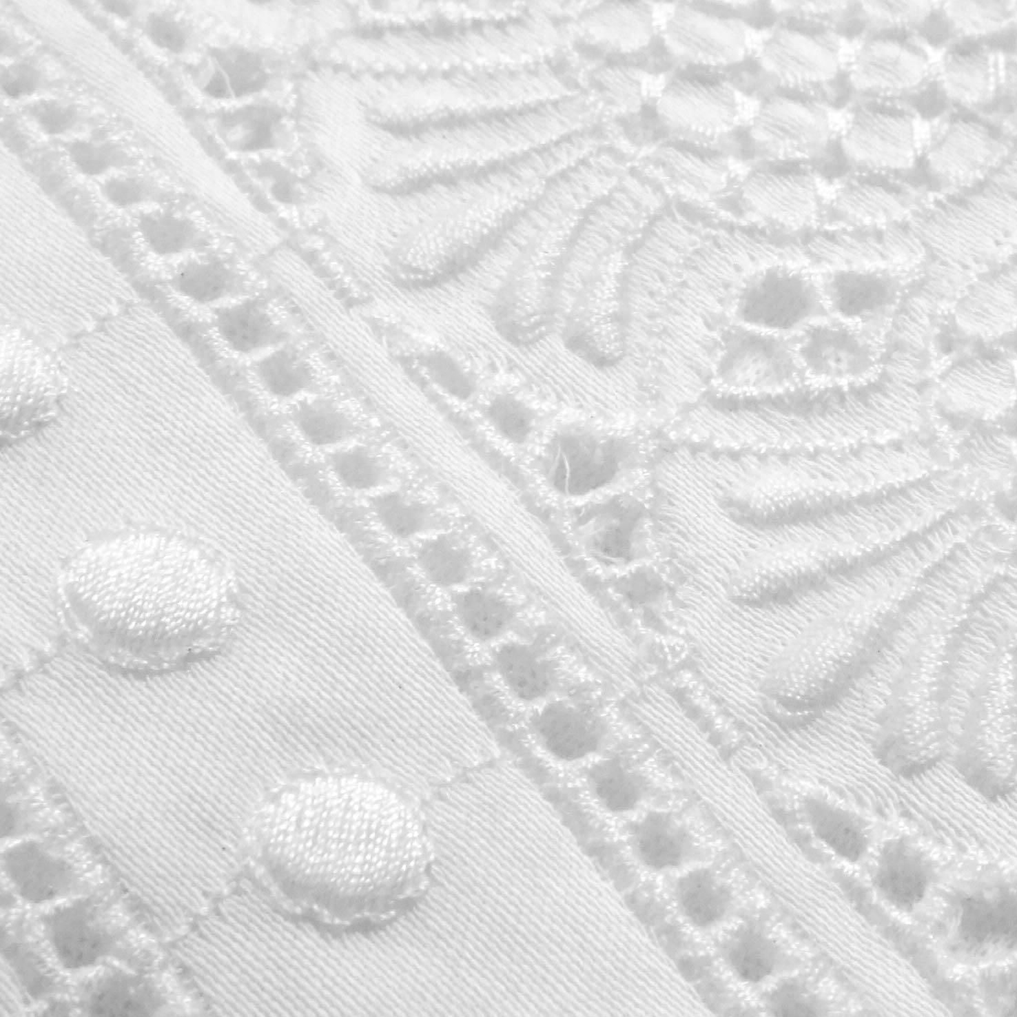 小さな雪の結晶が降り積もり、日の光できらきらと輝いている雪景色のような、清らかなイメージの純白レースのカバーです。上質な綿100%のサテン地に、ヨーロピアンテイストのオリジナルデザインの刺繍を施し、格調高いレースに仕上げています。