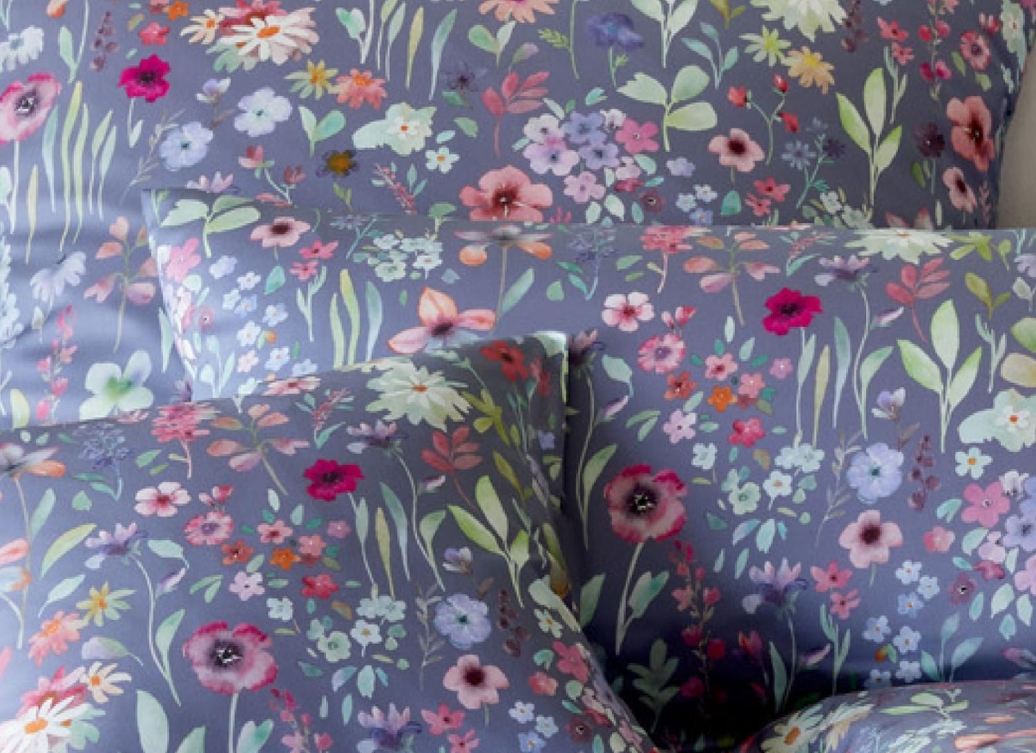 水彩で描いたような愛らしい草花のデザインがお部屋全体を和やかな雰囲気で包みます。