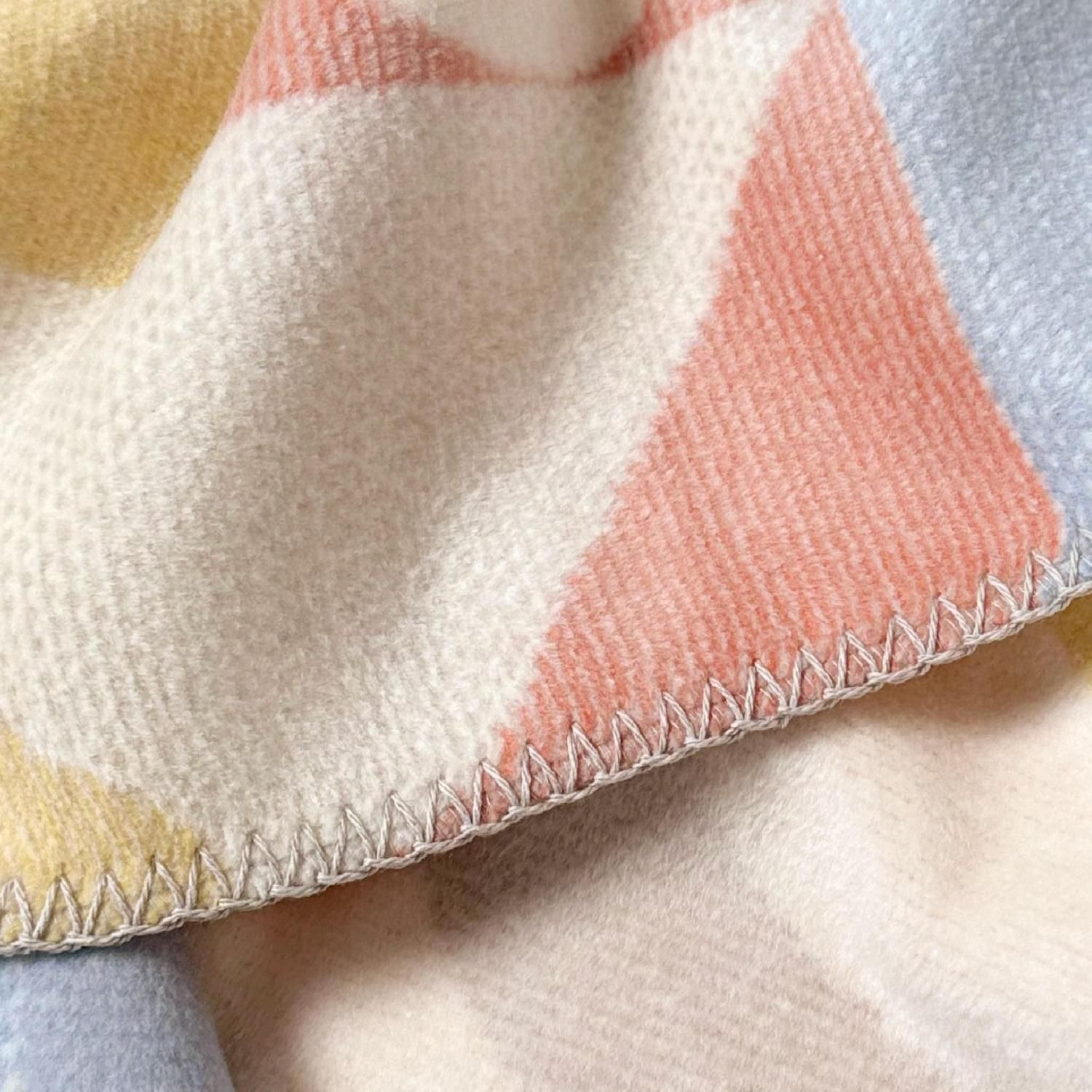 丈夫で吸湿性が高く、静電気が起こりにくい綿と、軽くて保温性に優れるアクリル。両素材を混紡することで、ほどよいボリューム感とソフトで滑らかな肌触りのブランケットに仕上がっています。
